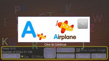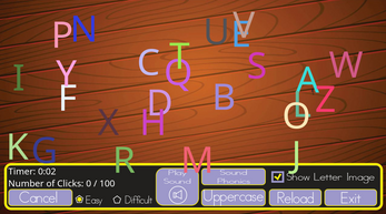 "ABC Chaser" is an engaging educational game designed for young learners to practice recognizing and sequencing alphabet letters. Players click on letters in the correct order, with the option to choose uppercase or lowercase. When a letter is selected, the game displays a related image, such as an apple for 'A'. This activity helps children improve their letter recognition, develop sequencing skills, and build vocabulary by associating letters with familiar objects.