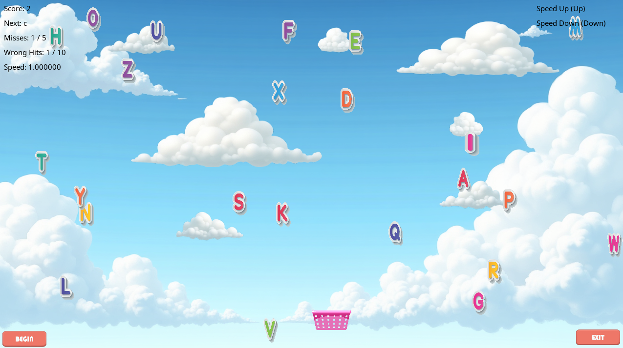 Catching letters from A to Z teaches the alphabetical sequence, a foundational skill for reading, spelling, and organizing information. Moving the basket to catch falling letters enhances motor skills and coordination, which are critical for early childhood development.The game requires concentration to track the correct letter and ignore distractions, fostering attention span and cognitive control. The interactive, game-based format makes learning enjoyable, encouraging repeated play and reinforcing letter knowledge through repetition.